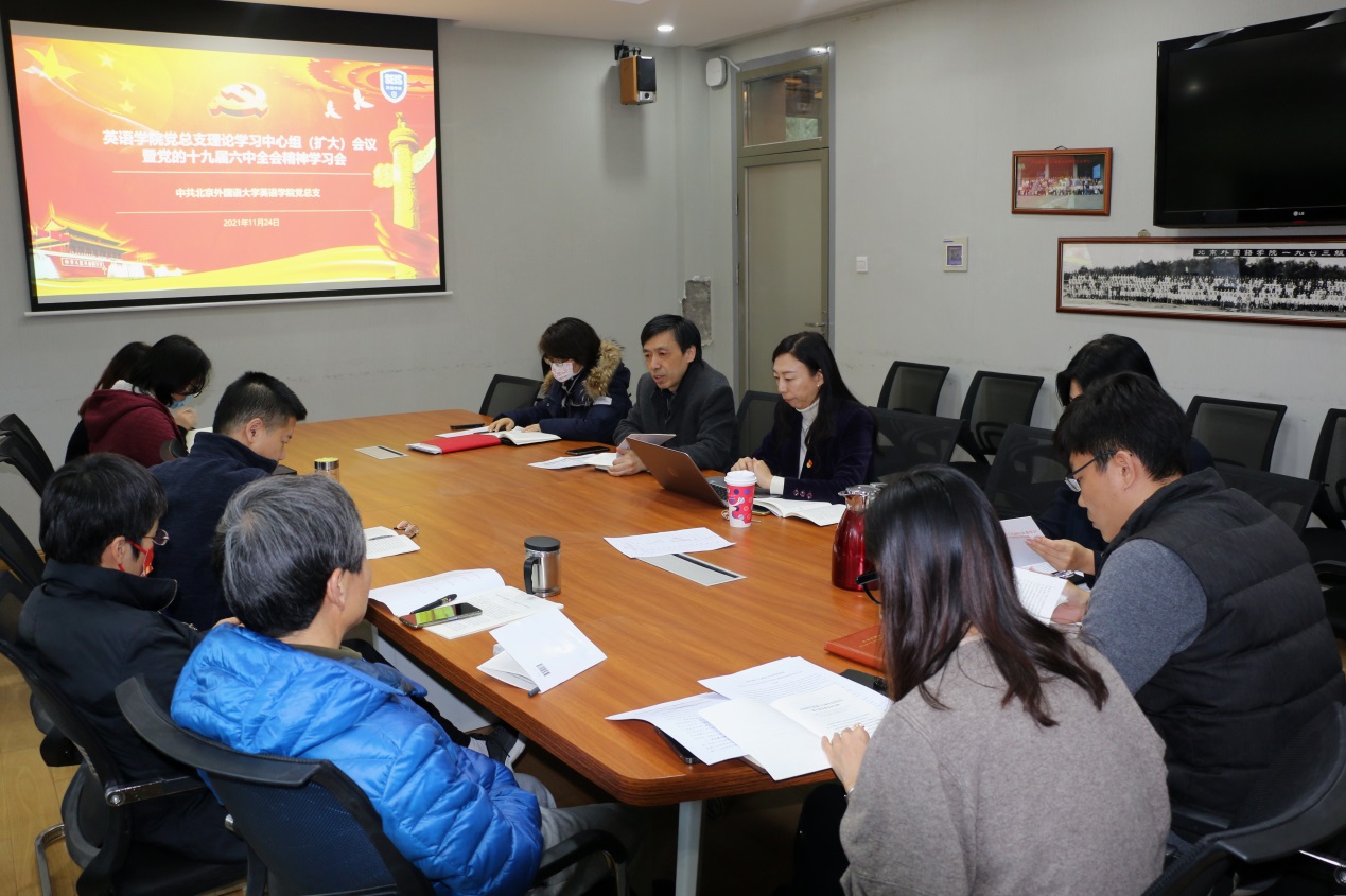 党总支副书记孟庆琨指出,《决议》极具历史穿透力、思想引领力、政治动员力、和时代感召力,要紧密联系实际,把全会精神贯彻落实到日常工作各方面全过程。要坚持用党的创新理论武装头脑,用习近平新时代中国特色社会主义思想铸魂育人,努力培养以实现中华民族伟大复兴为己任的新时代北外青年、英院青年。要把贯彻全会精神体现到做好当前各项工作上,切实增强责任感和紧迫感,切实抓好人才培养、党史学习教育等工作和任务,更加自觉地把个人努力奋斗融入学校一流大学建设进程中,更加自觉地把一流大学建设融入中华民族伟大复兴的进程中。强化底线思维,筑牢安全防线,科学谋划明年学生工作,保持学院发展良好态势。