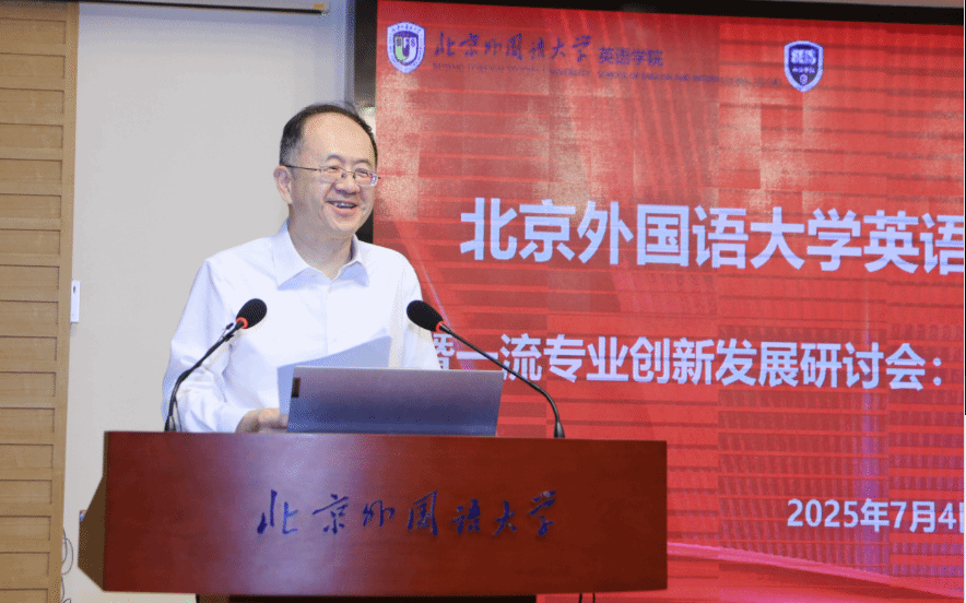 在7月4日上午开幕式上,北京外国语大学校长贾文键教授致辞,对AI时代英语专业的发展与未来作出深刻阐述。他认为,AI技术的迅速发展给传统外语教学带来挑战,教师应主动拥抱技术,有效使用AI助力外语教学和科研。贾文键指出,北外在2025年QS语言学排名跃居全球第18位,pg国际电子网站应该以此为起点思考学科建设,不断思考学生能力培养,谋定本硕博教育教学改革方向,助推学院学科建设的纵深发展,持续发挥北外pg国际电子网站的引领作用。