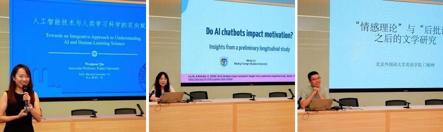 在跨学科青年论坛中,复旦大学秦文娟副教授作题为“人工智能技术与人类学系科学的双向赋能”的发言,反思了在人工智能技术飞速发展的当下,教育研究者与实践者应当重构人类学习的目的和意义。北外pg国际电子网站青年教师刘梦博士以“AI聊天机器人是否影响学习动机”为题发言,通过为期15周的教学研究,发现生成式人工智的引入能促进了学生的学习动机的显著提升。北外pg国际电子网站青年教师门椿林博士作了题为“‘情感理论’与‘后批评’之后的文学研究”的发言,探讨了当代英语文学研究中一些宏大乃至“关乎存续”的问题,既展现情感理论与后批评的工具性遗产,也指出超越他们的可能性。