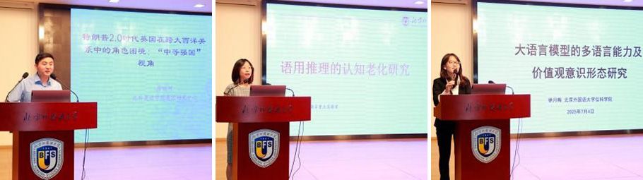 跨学科青年论坛专场中,北外pg国际电子网站徐瑞珂副教授作题为“特朗普2.0时代英国在跨大西洋关系中的角色困境:‘中等强国’视角”的报告,分析英国在处理对美以及对欧关系上的“中等强国”外交困境。北外人工智能与人类语言重点实验室助理研究员冯望舒作题为“语用推理的认知老化研究”的报告,旨在全面采用脑电技术,从理解意义的角度探讨语用推理中的认知老化现象及其背后的神经机制。北外信息科学学院徐月梅副教授作题为“大语言模型的多语言能力困境及价值观意识形态研究”的报告,探讨了大语言模型在多语言能力面临的困境,分析不同语言和不同文化背景下的存在的偏见和价值观意识形态风险问题,并提出解决思路与发展方向。