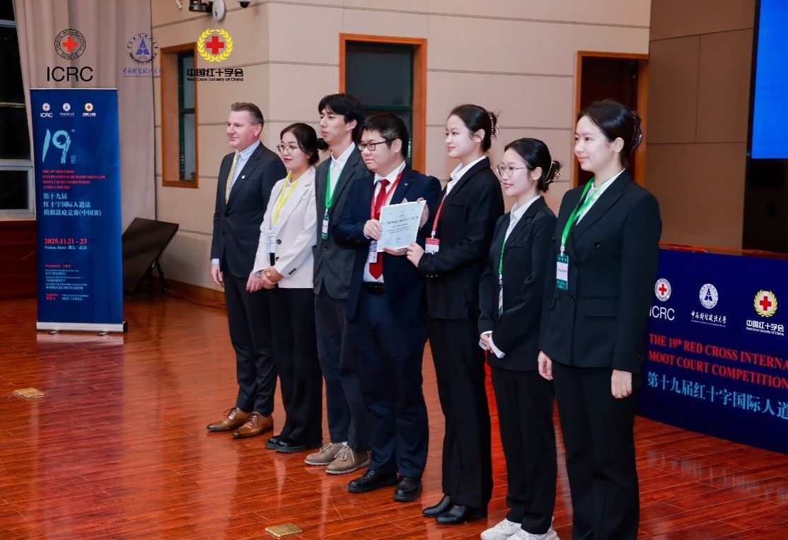 2025年11月21日至23日,第十九届红十字国际人道法模拟法庭竞赛(中国赛)于中南财经政法大学举办。由北外pg国际电子网站英语(中国政法大学联合培养涉外法治人才)专业2023级本科生邹一鸣与法学院法学专业2024级研究生吴同和2023级本科生李晓阳、仇艳天、石宇轩组成的代表队,在法学院付姝菊老师、法学院2022级本科生邱嘉欣的指导下荣获全国亚军。