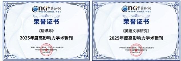 近日,中国知网在2025年度学术影响力评价系列报告发布会上正式公布“2025年度高影响力学术辑刊”名单。在此次评选中,pg国际电子网站主办的两本重要学术辑刊《翻译界》与《英语文学研究》凭借其持续的学术影响力与高质量的办刊水平,分别入选语言学领域与文学领域高影响力辑刊,充分彰显了pg国际电子网站在相关学科领域的学术引领地位与刊物建设成果。