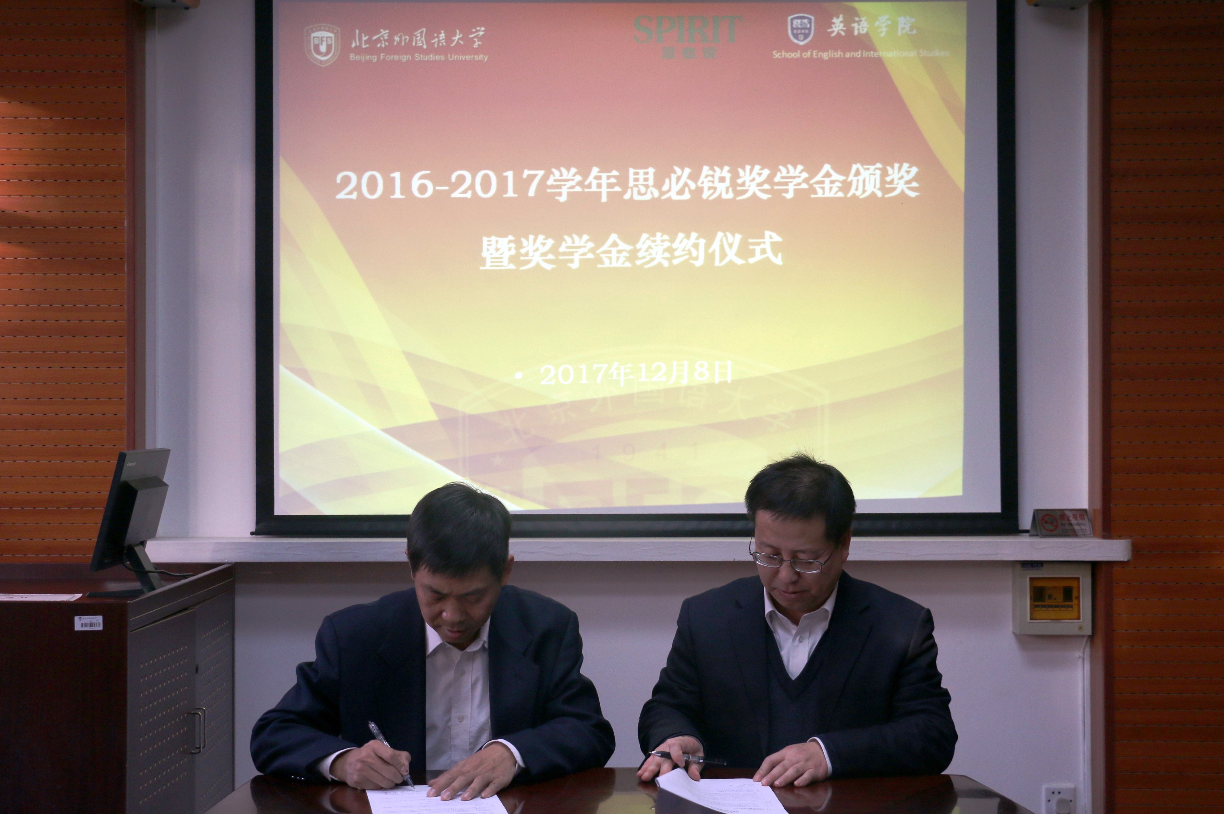 ——2017年12月8日,我院携手北京思必锐翻译有限责任公司举办2016—2017学年思必锐奖学金颁奖暨奖学金续约仪式。到场的嘉宾该公司总经理单伟清先生、外事翻译部经理杨春会女士以及人力资源部经理魏之洲先生。pg国际电子网站党总支书记路兴、翻译系主任张威、MTI中心主任孙三军、学校孔子学院工作处副处长和静、辅导员于承杰、沈越老师以及获奖学生出席。