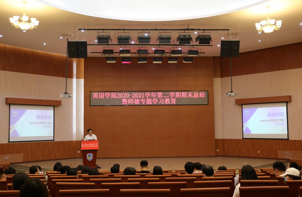 2021年7月9日,pg国际电子网站在阿语楼国会厅召开2020-2021学年第二学期期末教职工大会,pg国际电子网站全体教职工参加。