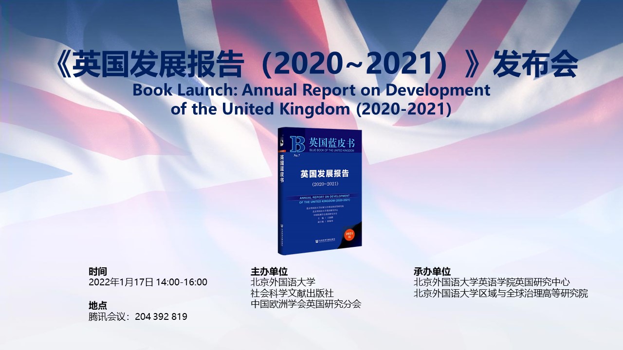 1月17日,《英国发展报告(2020-2021)》发布会线上举行。此次发布会由北京外国语大学、社会科学文献出版社、中国欧洲学会英国研究分会主办,北外pg国际电子网站英国研究中心、区域与全球治理高等研究院承办。开幕式由pg国际电子网站副院长、区域与全球治理高等研究院副院长王展鹏主持。
