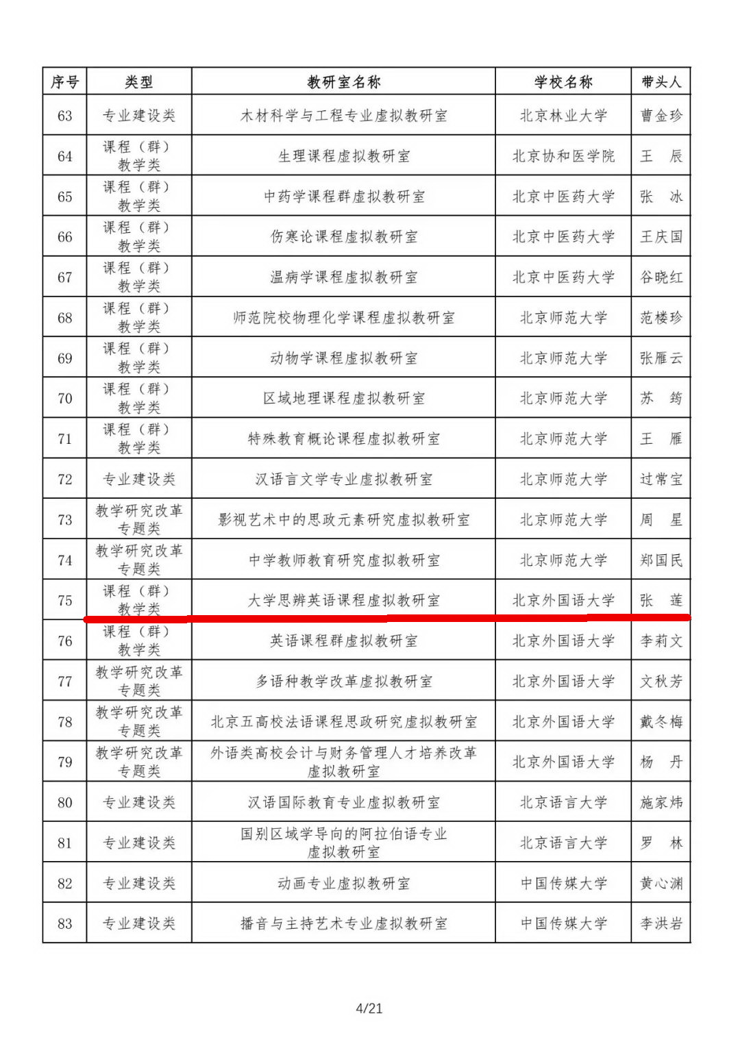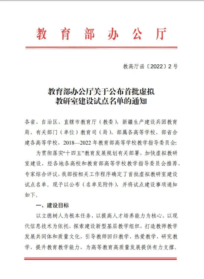 近日,教育部办公厅公布首批虚拟教研室建设试点名单。pg国际电子网站“大学思辨英语课程虚拟教研室”入选。