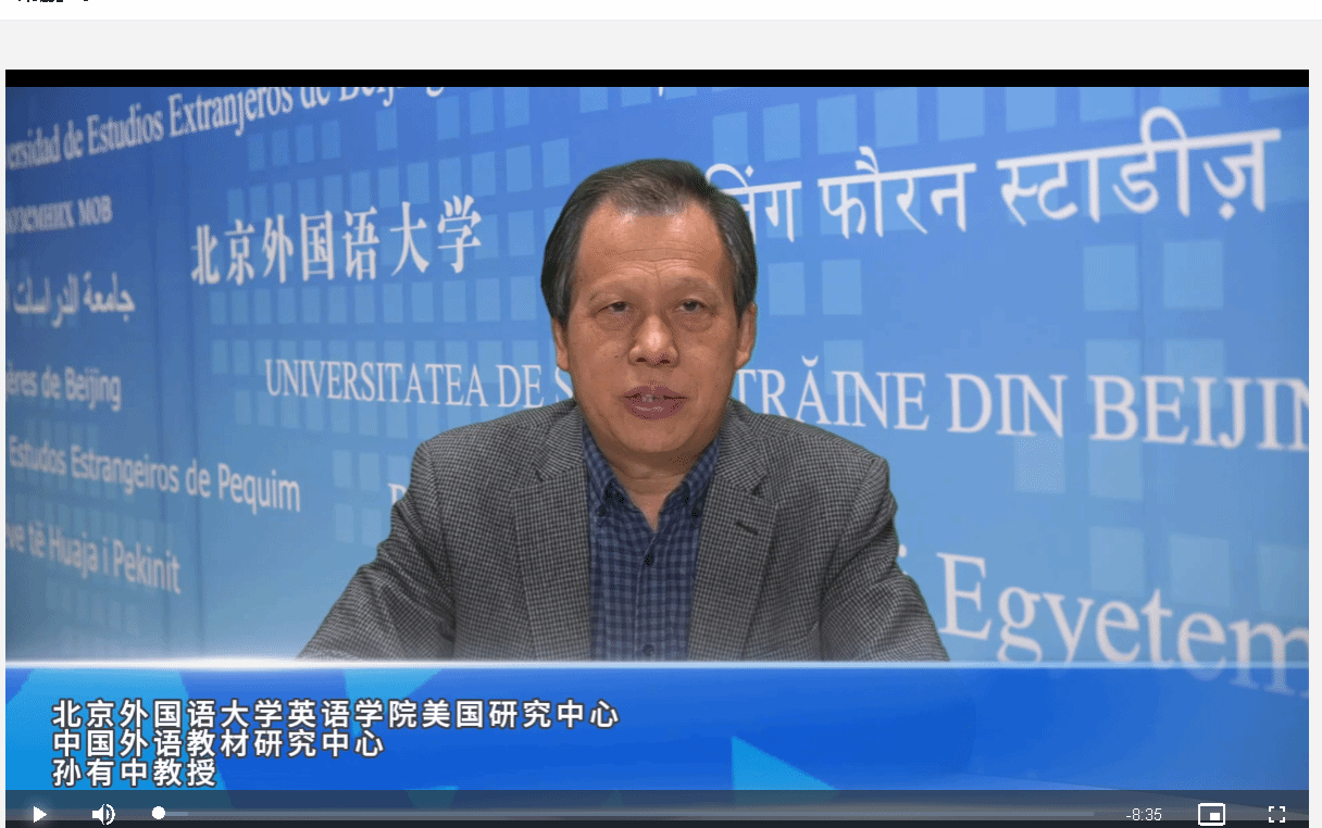 10月26日上午,在图书馆四层会议厅举行了研讨会全体会议。开幕式由美国研究中心主任付美榕教授主持。北京外国语大学原副校长、美国研究中心孙有中教授在视频致辞中热情地回顾了由张之香大使(Ambassador Julia Chang Bloch)创建的中美教育基金和美国研究联络会通过举办相关活动,推进中国的美国研究和中美人文、教育交流的光辉历程。孙教授还指出,在中美竞争加剧的背景下,中美教育基金和北京外国语大学美国研究中心以及美国研究联络会肩负着增进中美人文交流的使命与责任。张之香大使在致辞中,对北京外国语大学美国研究中心及梅仁毅教授表达了敬意与感谢,并强调要加强中美教育交流、努力搭建中美合作桥梁。