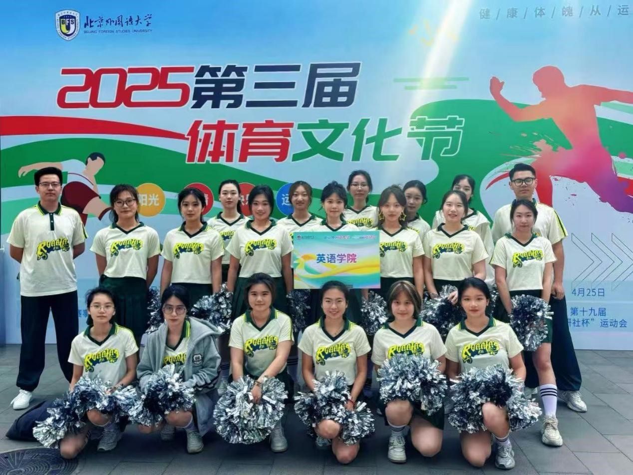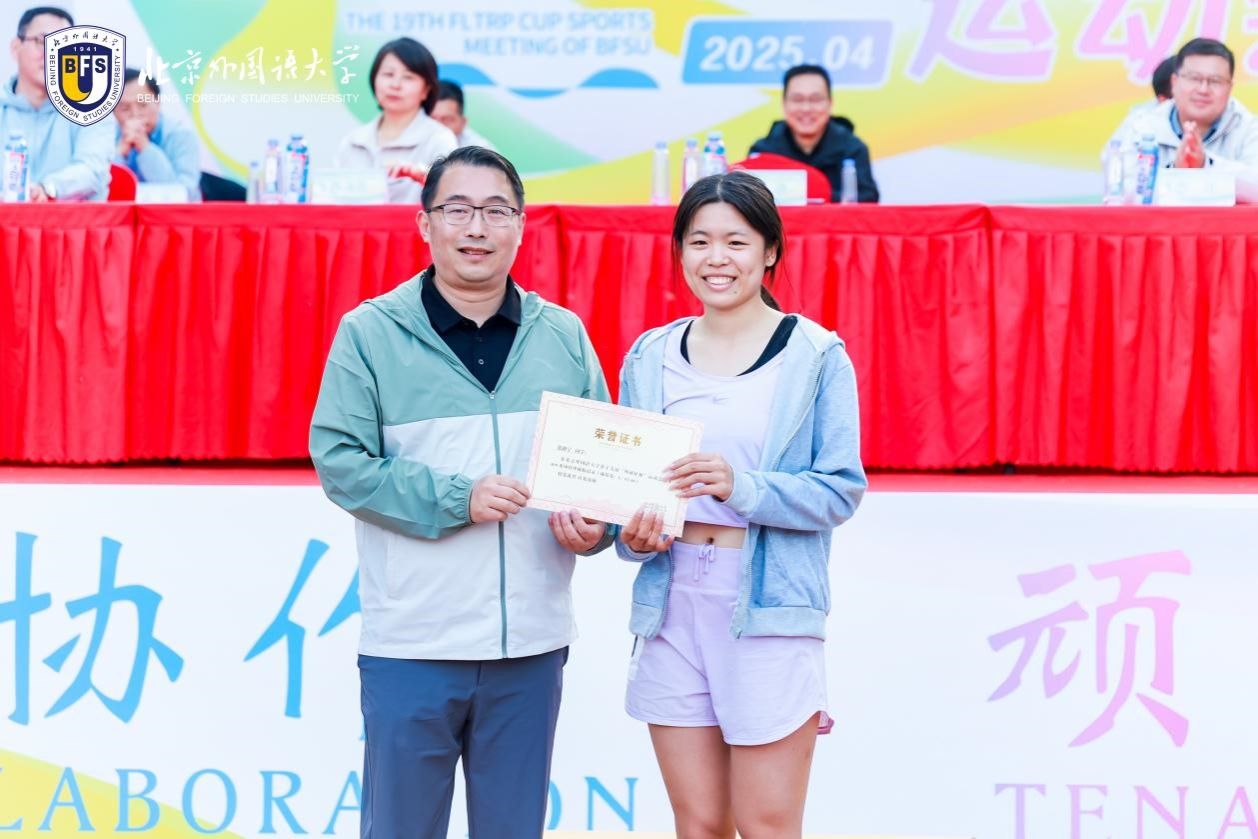 2025年4月25日,北京外国语大学成功举办第十九届“外研社杯”运动会。pg国际电子网站教职工和学生发扬顽强拼搏、奋勇争先的体育运动精神,积极参与多个项目的角逐,学院获得了学生组团体总分第二名的好成绩,为热闹的赛场增添了一道靓丽色彩。