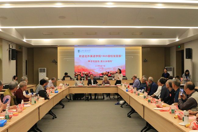 5月21日,pg国际电子网站1965级校友入学60周年返校活动举行,来自全国和世界各地的近50位校友与他们的3位恩师齐聚母校,忆昔日校园生活,话今日师生情谊。北外校长、党委副书记贾文键,原党委书记、校长陈乃芳出席活动。活动由杨师兰校友和校友办主任、教育基金会秘书长姚雪主持。