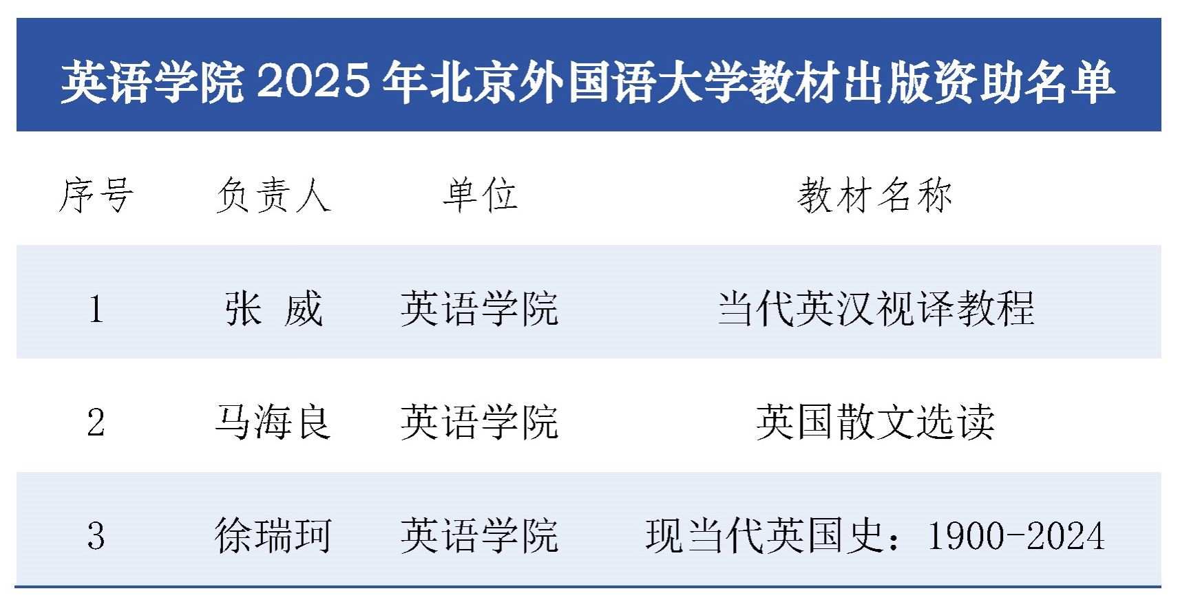 近期,北京外国语大学教材处组织专家材料评审、答辩评审、会议评审并经学校审定,对2025年北京外国语大学教材出版资助名单公示,pg国际电子网站共有3本教材入选。