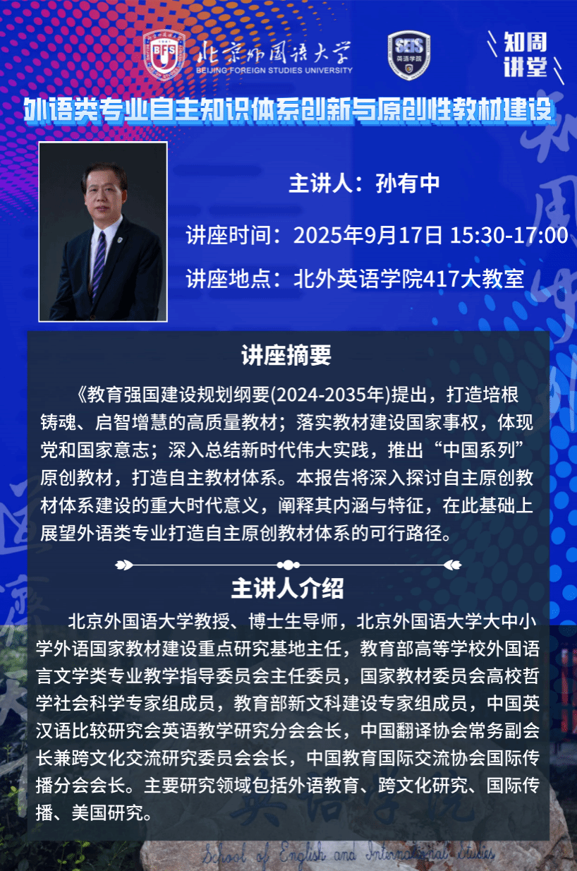 讲座地点:北京外国语大学东校区英语楼417大教室