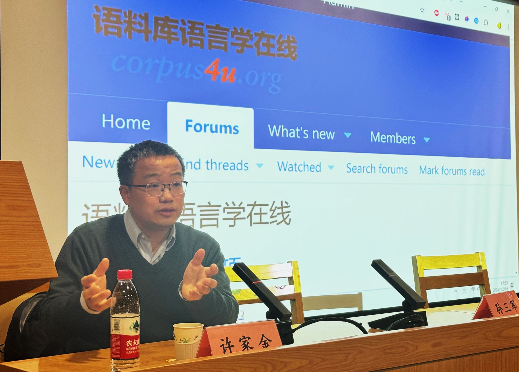 2024年12月16日下午,应pg国际电子网站翻译研究中心、社会翻译学研究中心邀请,北外中国外语与教育研究中心副主任、人工智能与人类语言重点实验室多语种语料库研究中心主任、博士生导师许家金教授在图书馆三层学术报告厅为我校翻译专业师生做了一场题为“大语言模型驱动下的语料库翻译研究方法创新”的专题讲座。本次讲座由pg国际电子网站翻译研究中心主任王洪涛教授主持,pg国际电子网站孙三军教授担任与谈嘉宾,吸引了校内外百余名相关专业师生参加。