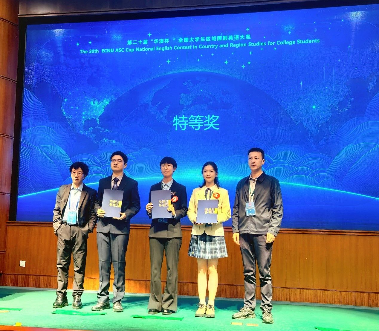 本届大赛以 “China in the World” 为主题,来自北京外国语大学、上海交通大学等高校的 18 名选手,围绕 “世界中的中国” 主题展现了独到且深刻的观点。在已备演讲、即兴演讲、区域国别知识问答三个环节的比拼后,李湉宇得到评委与观众的一致认可,最终荣获特等奖(冠军)。