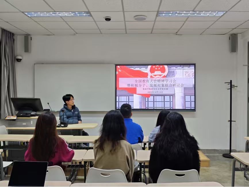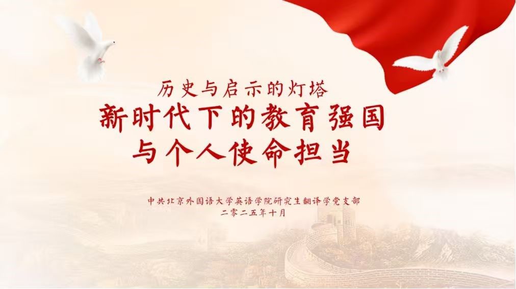 各支部积极将教育强国理念融入共建实践,以实际行动践行“教育要扎根中国大地”的要求。MTI笔译党支部围绕习近平总书记对教育的关心关爱主题,重温培训内容并分享实践案例。翻译学党支部结合报告重点,就与北京边检总站执勤大队开展红色“1+1”共建活动展开深入讨论;语言学党支部则围绕讲话精神,探讨与北京语言大学语言康复学院推进红色“1+1”共建计划,推动以语言学科优势服务特殊教育事业;本科生党支部深入解读教育强国的时代内涵,明确以奋斗姿态投身教育强国实践的目标,积极推进北京市盲校爱心助学活动。