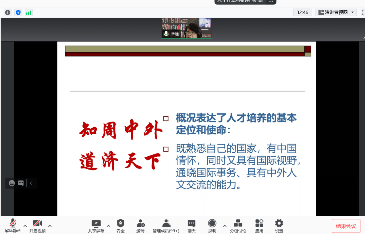 9月8日下午13:00,pg国际电子网站2021级本科生新生培养方案介绍会在线上举行,pg国际电子网站副院长张莲教授、教务老师王红婴老师以及陈照老师出席了本次会议,会议由辅导员吕籽奕老师主持。介绍会从人才定位、培养使命、课程设置、学习任务、课堂理解以及未来规划等方面详细展开。