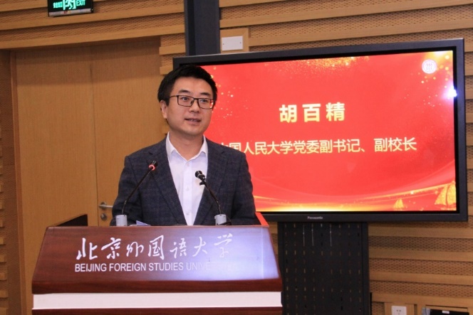 北外学工部部长陈海燕,pg国际电子网站党总支书记王明欣、副院长张莲,招生办主任薛维华,教务处副处长白亮,党办校办副主任滕岑,中国人民大学教务处副处长李向前以及两校师生代表参加仪式。