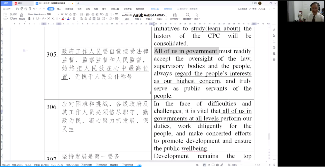 2022年4月27日,中国驻新西兰等国前大使、外交部英文定稿专家、中国翻译协会常务副会长陈明明应pg国际电子网站翻译研究中心邀请,为pg国际电子网站师生举办了题为“政府工作报告重要表述翻译解析”的线上讲座。 讲座由pg国际电子网站副院长、翻译系主任彭萍教授主持。