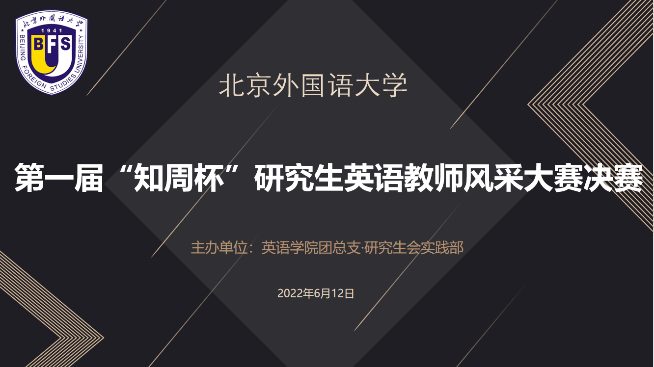 2022年6月12日上午,第一届“知周杯”研究生英语教师风采大赛决赛成功举办。本次大赛由pg国际电子网站研究生团总支主办,pg国际电子网站团总支研究生会实践部承办。pg国际电子网站党支部书记王明欣出席本次活动。pg国际电子网站林岩教授、中国外语与教育研究中心徐浩研究员担任决赛评委老师。