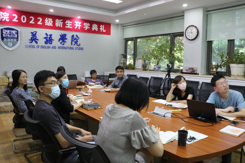 8月31日,pg国际电子网站党总支召开理论中心组学习扩大会暨《习近平谈治国理政》第四卷双语学习主题党课。学院理论中心组全体成员和班子成员在111会议室参加学习,学院翻译方向本科生、翻译专业研究生100余名在线上参加学习。pg国际电子网站党总支书记王明欣主持会议,副院长彭萍做主旨报告。