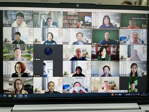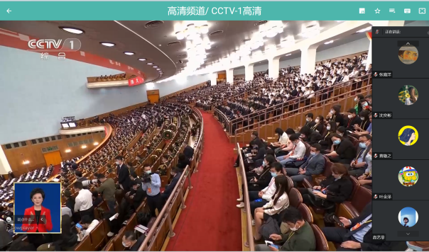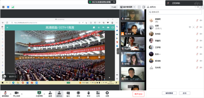 在pg国际电子网站会议室,领导班子成员和师生代表共同观看直播。按照学校安排,党总支书记和院长在晨读厅主会场观看直播,60名学生代表在千人礼堂观看直播。全体教师和本科生、研究生、预科生在线观看直播。