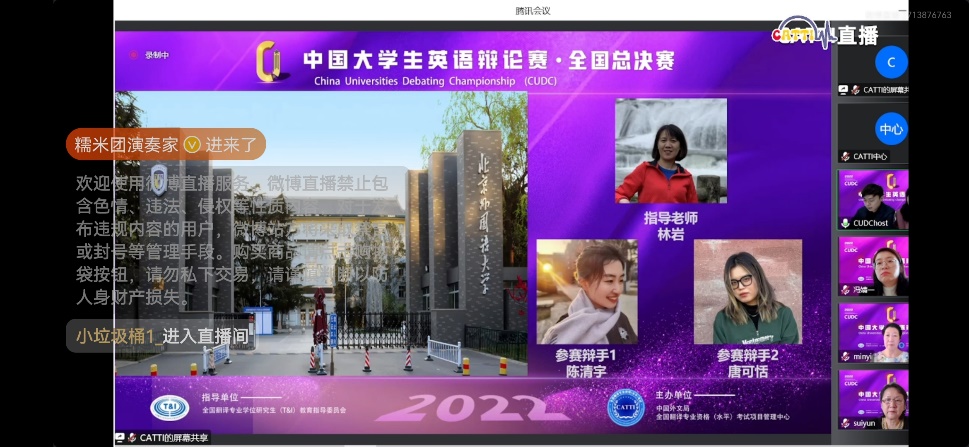 pg国际电子网站学生唐可恬、陈清宇夺冠2022年中国大学生英语辩论赛(CUDC)全国总决赛