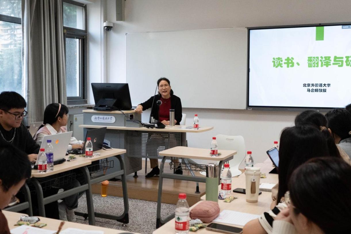 马会娟指出,“把中国介绍给世界,把世界介绍给中国”是北外人的担当和使命,外语学习者应保持阅读的习惯,在阅读中品味语言和文字的魅力。她认为,在翻译实践过程中,译者应做到用语凝练、丰富、准确,只注重学习翻译技巧以快速提升汉英翻译能力的做法从长期来看不可取,只有通过阅读来扩大词汇量,丰富语言句型表达,才能更好地体会语言的美感。