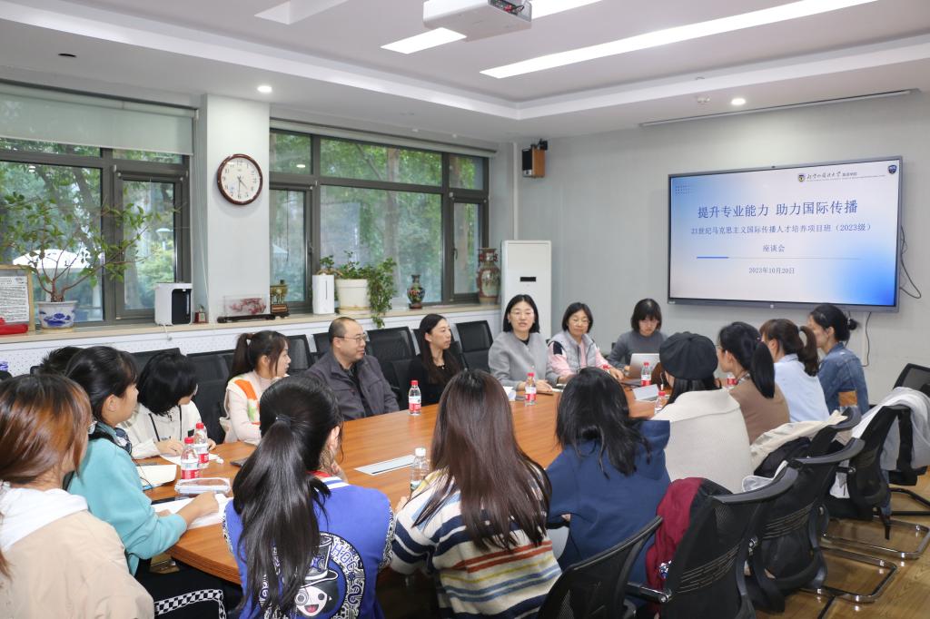10月20日,pg国际电子网站召开了21世纪马克思主义国际传播人才培养项目班(2023级)提升专业能力·助力国际传播主题座谈会。pg国际电子网站党总支书记王明欣、副书记孟庆琨,教师代表刘波,教务秘书王红婴、陈照以及2023级北外-人大21世纪马克思主义国际传播人才培养项目班学生代表们参会。座谈会由党总支副书记孟庆琨主持。