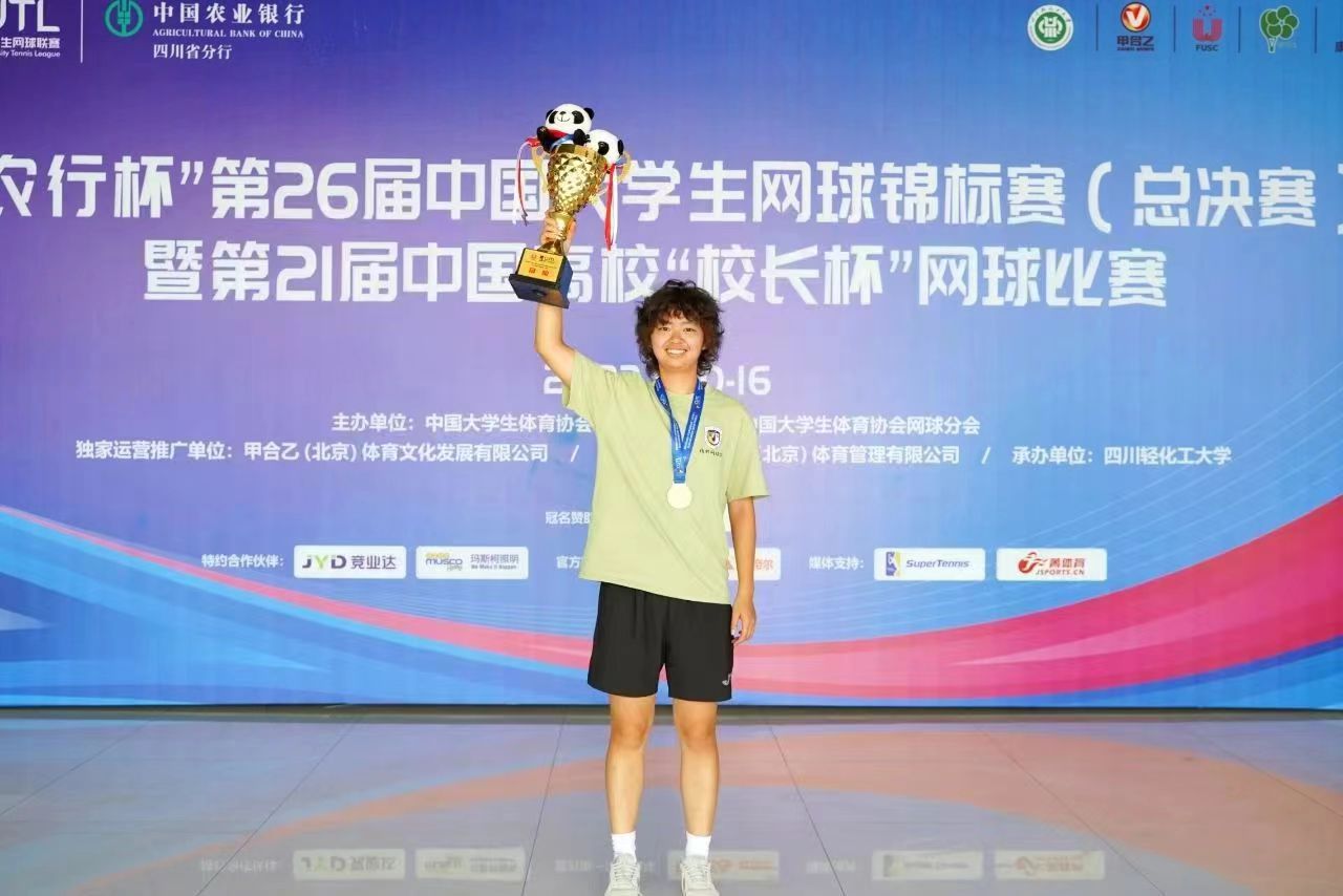 这是继吴玥瑶同学在获得2023年第26届中国大学生网球锦标赛(总决赛)女子甲组团体冠军、女子甲组单打冠军后,再次获得该项比赛团体和个人的好成绩,为北外和pg国际电子网站争得了荣誉。