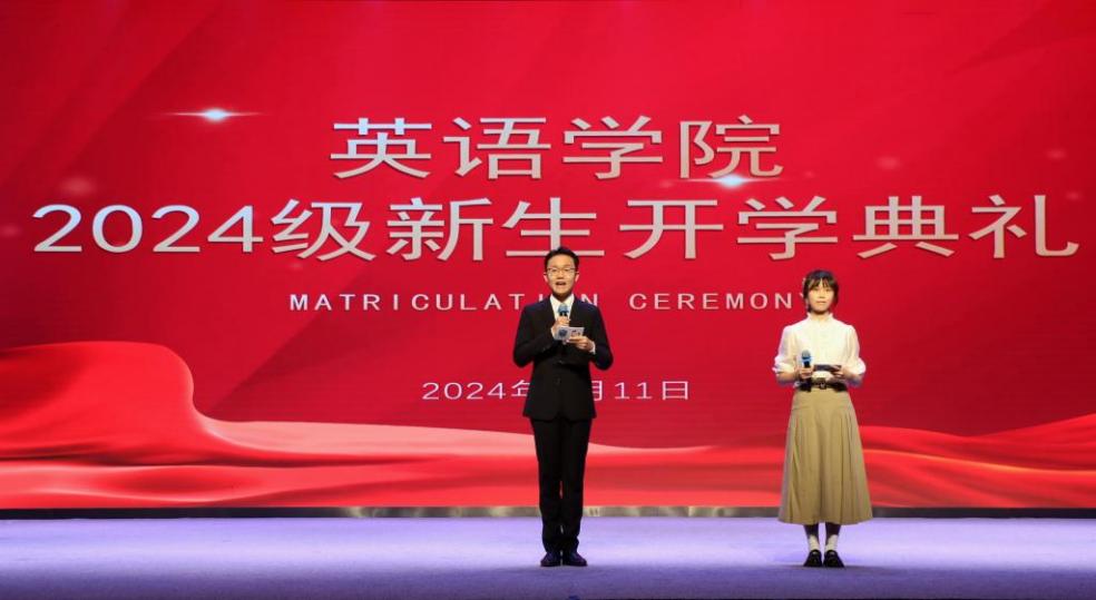 2024级本科新生代表方樱频同学则以家国情怀为主题,分享了自己的三点愿景:家国情怀,根植心间;立足中国,融通世界;锤炼专业,筑梦未来。她勉励同学们心怀国家、放眼世界,不断提升自己的专业能力与素养。2024级硕士新生江涵伟同学则强调了培养思辨精神和判断能力的重要性,鼓励大家提升自身的专业技能。国际项目班新生代表马悦晨同学提出,无论身在何处,北外英院学子都应牢记自己的根与魂,胸怀祖国,放眼全球。