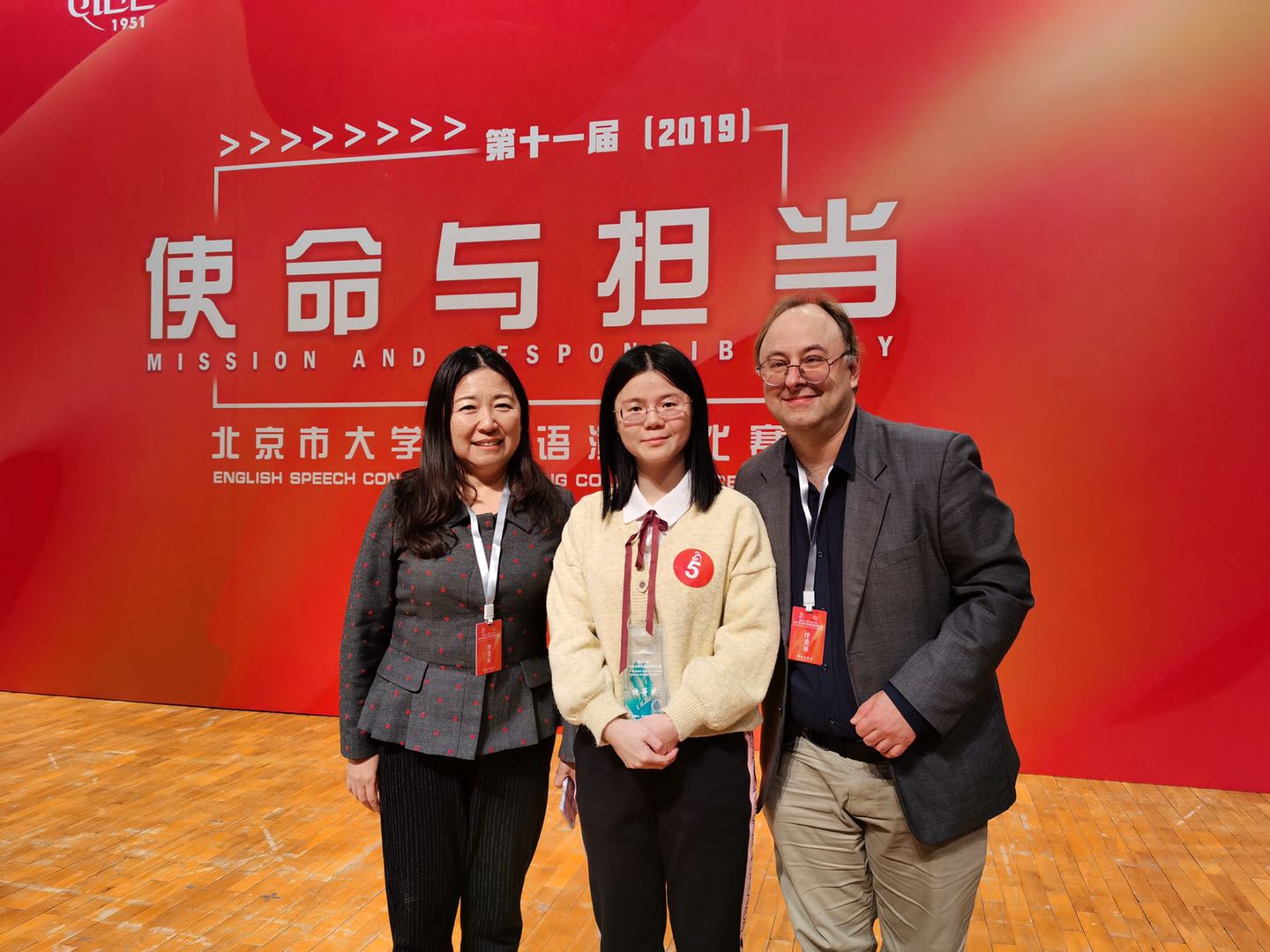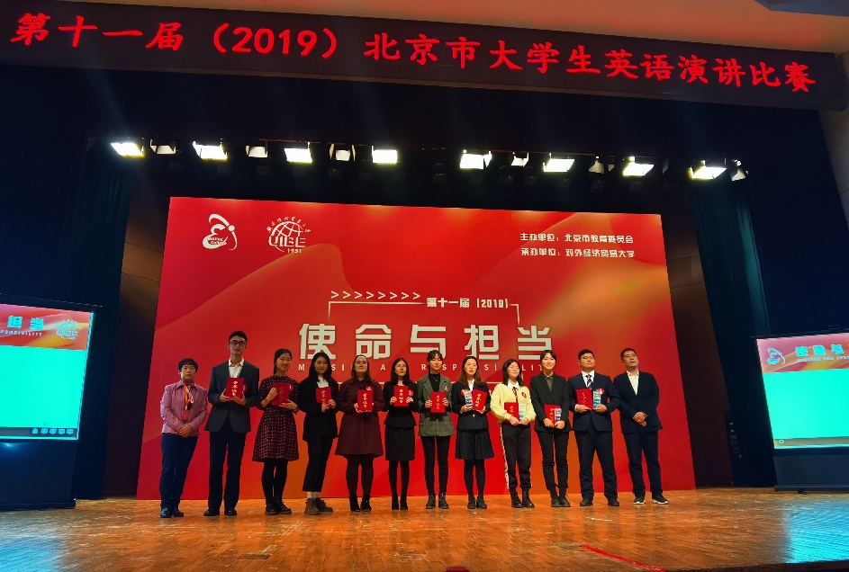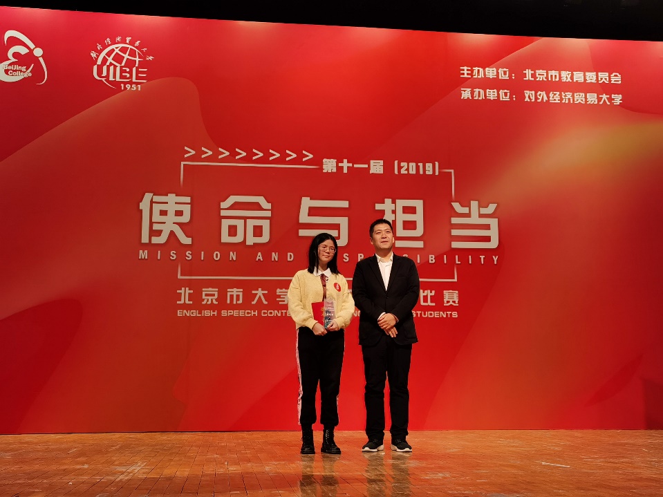 11月30日,由北京市教育委员会主办、对外经济贸易大学承办的第十一届(2019)北京市大学生英语演讲比赛圆满落幕,我校pg国际电子网站大一学生卢洁杀进决赛并荣获特等奖。本届大赛的主题是“使命与担当”,来自六十所北京高校的六十名选手同台竞技,以自己的演讲为媒介从不同角度阐释和传播新时代青年的“使命与担当”。我校选手卢洁复赛阶段尽管排位比较靠前不算太理想,但她仍以95.4分的高分位列小组第一出线进入了决赛。在决赛阶段,她沉着应战,凭借扎实的基本功和出色的发挥再次以94.21的高分拔得头筹,获得该项比赛特等奖。祝贺卢洁在此赛事中取得的优异成绩,同时也感谢英院指导老师周杜娟、龚雁老师以及英院演讲队成员们的辛勤付出。