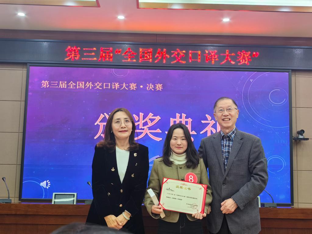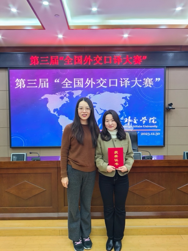 2023年12月30日,由外交学院主办的第三届“全国外交口译大赛”在京圆满落幕。经过激烈角逐,pg国际电子网站口译专业硕士研究生向贵凡同学荣获特等奖(冠军),王颖冲老师荣获“优秀指导教师”称号。