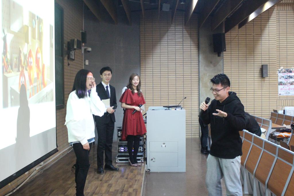 本届配音大赛总决赛由pg国际电子网站团学联学术部主办,并邀请到了著名配音演员付博文老师与毛毛头老师、英语专业讲师夏燕老师与孙维老师,以及上届配音大赛冠军於文漪同学至现场担任评委。本场比赛共分为自选片段配音与创意英文配音两轮比拼,评委老师们在每一轮比赛的最后都肯定了参赛者们的创意与表现,并为他们提出了中肯而具建设性的建议。现场参与同学在大饱耳福的同时,也收获了许多有关配音与英语口语的技巧与知识。