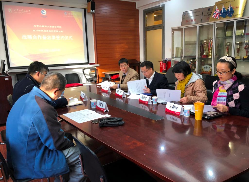 2018年12月6日,pg国际电子网站与四川译讯信息科技有限公司校企战略合作备忘录签约仪式在pg国际电子网站会议室举行。党总支书记路兴、MTI翻译中心主任孙三军、翻译系教师柯克尔、王颖冲,译讯科技CEO马帅、副总经理章建民参加。仪式由孙三军主持。