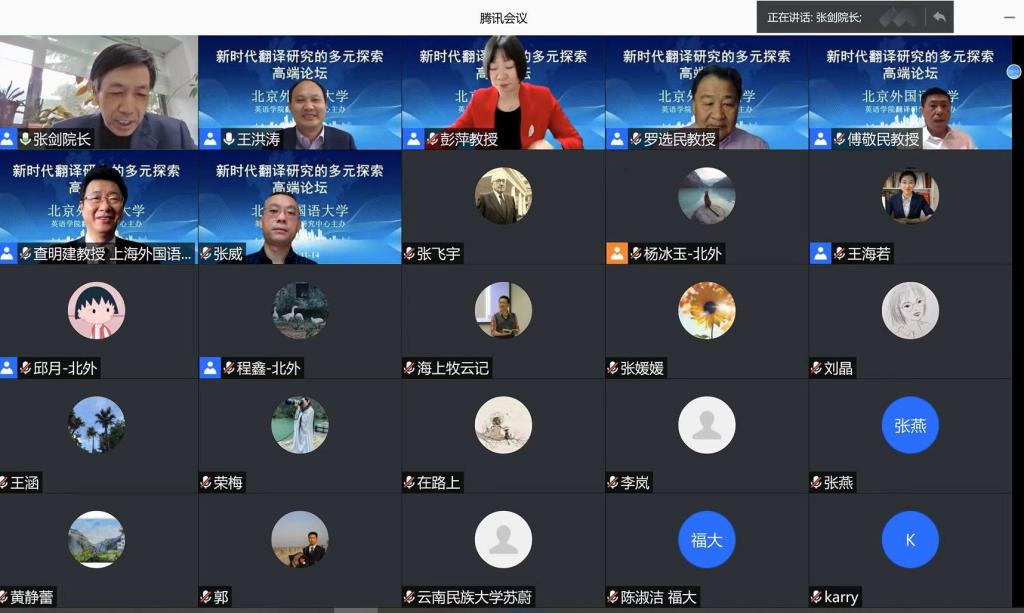 2020年11月14日,由北京外国语大学主办、研究生院资助、pg国际电子网站翻译研究中心承办的“新时代翻译研究的多元探索”高端论坛在云端隆重举行。本次线上论坛在腾讯会议和bilibili平台直播,观看人气峰值高达5393人。