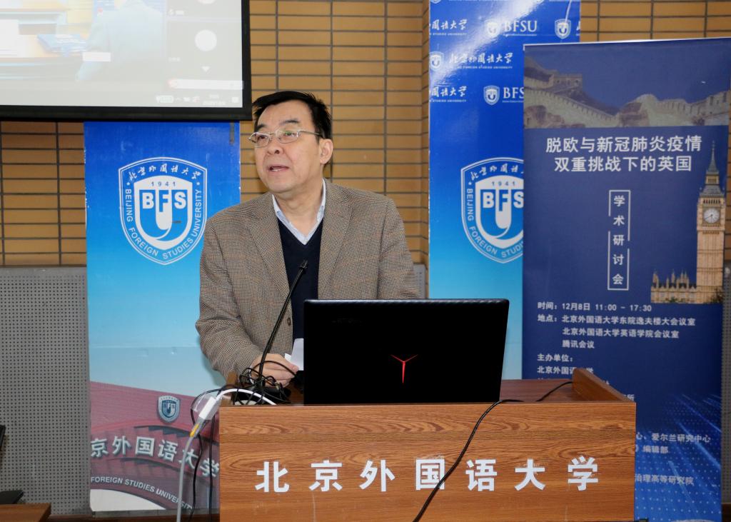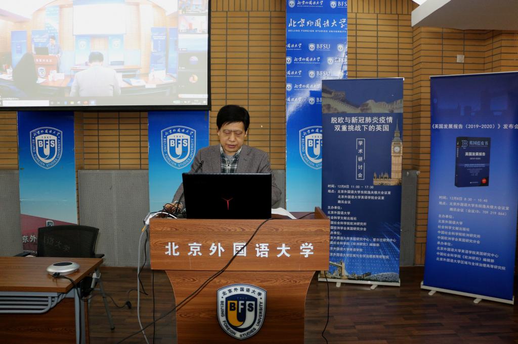 12月8日,《英国发展报告(2019-2020)》发布会暨“脱欧与新冠肺炎疫情双重挑战下的英国”学术研讨会在我校举行,会议采取线上、线下相结合的方式进行。此次活动由我校和社会科学文献出版社、中国社会科学院欧洲研究所、中国欧洲学会英国研究分会共同主办,我校pg国际电子网站英国研究中心、爱尔兰研究中心、区域与全球治理高等研究院与《欧洲研究》编辑部承办。开幕式由英国研究中心主任王展鹏主持。