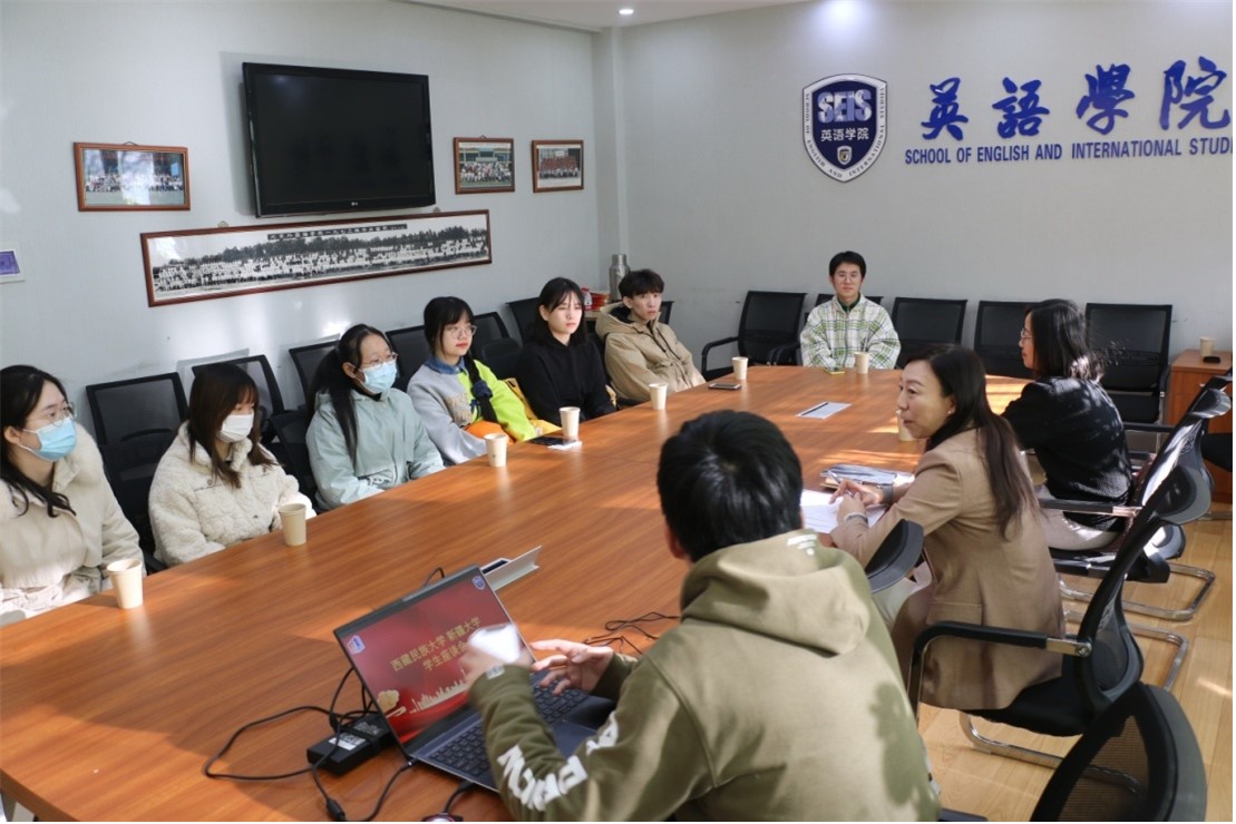 座谈会上,师生亲切交谈,围绕同学们一学期以来在英院的学习生活进行了深入交流。大家一致表示能够来到北外学习非常幸运,感谢北外和pg国际电子网站各位老师同学的帮助。
