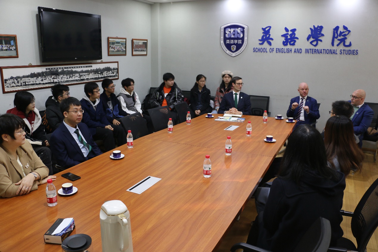 都柏林大学代表团还与pg国际电子网站预科班学生进行了座谈。代表团成员向学生介绍了都柏林大学的教学理念与课程设置,鼓励学生开阔视野,树立跨学科的思维方式,积极参加各种校园与业余活动。代表团还回答了学生在都柏林大学学习与生活的相关问题。