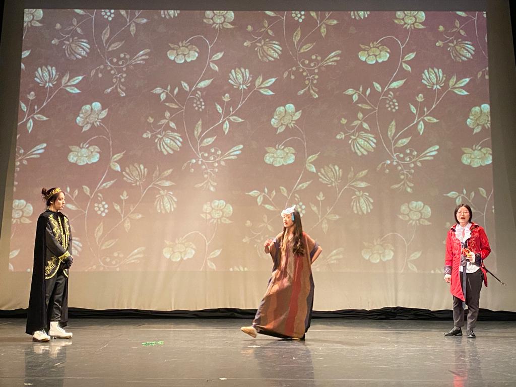8月25日晚七点,实践团成员在剑桥岔道口演剧厅为观众带来了一场包含《茉莉花》《摘棉花》《梦回敦煌》、莎剧《第十二夜》等九个中英文节目,充分展现了北外师生的语言功底和文艺素养。此次演出共有六个节目包含舞蹈元素,团队中负责舞蹈的同学在演出前参加了Bolly Bhangra Fit Dance Class的东方舞特训,这家工作室教舞者以丰富多样的手语来与动作配合,为舞者在正式演出中自然优美地传情达意提供了思路。
