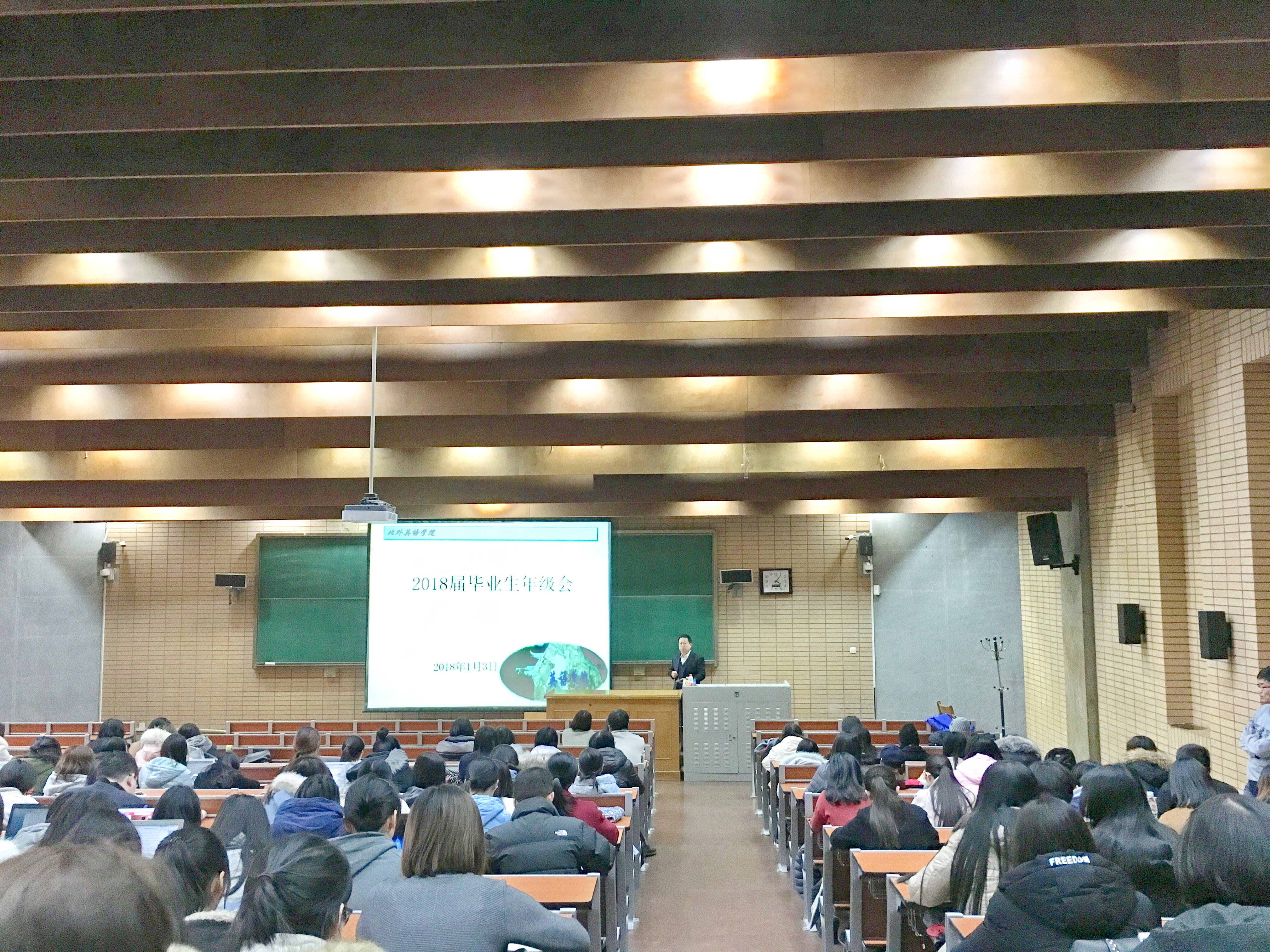 ——2018年1月3日下午,在逸夫楼第一阶梯教室,pg国际电子网站召开2018届毕业生年级会。党总支书记路兴、副院长王展鹏及辅导员于承杰参加。2015级英语语言文学、翻译学专业研究生,2016级MTTI专业研究生及2014级本科生300余人参加。