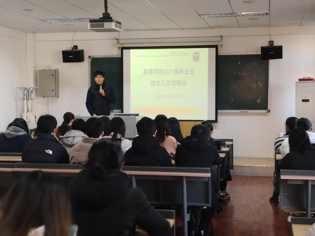 于老师从五个方面进行了说明讲解。一是就业情况介绍。他结合2020届毕业生就业去向、求职信息发布、签约进度及求职过程受疫情影响呈现出的新情况,向同学们一一解读。他说,2020年新冠疫情的突然爆发,一方面打乱了同学们的求职安排,造成求职进程迟滞;另一方面延缓了签约进程,导致大部分毕业生都在毕业离校后才完成最终签约,这对同学们的求职就业造成了很大困难。二是签约注意事项。他从三方协议申领、就业网填报以及政审等环节,进行了详细的说明。特别提到要诚信就业,签约前充分考虑,签约后及时提交。三是毕业手续办理。于老师根据学校关于户档派遣以及党/团组织关系转出的相关要求,向同学们介绍了不同毕业去向下,户档派遣的具体流程以及党/团组织关系转出步骤。四是下学期的安排。他结合往年毕业活动开展情况及疫情防控形势,提出下半年几个重要的时间节点的安排,以便于同学们合理规划时间。五是毕业安全教育。于老师强调,冬季是流行性传染病高发季节,加之疫情防控的特殊时期,大家务必保证身体健康,不要麻痹大意,影响学业和求职。同时,他也从网络诈骗、毒品安全、用电用火安全以及求职陷阱等方面,提醒同学们要警钟长鸣,时刻提高安全意识。