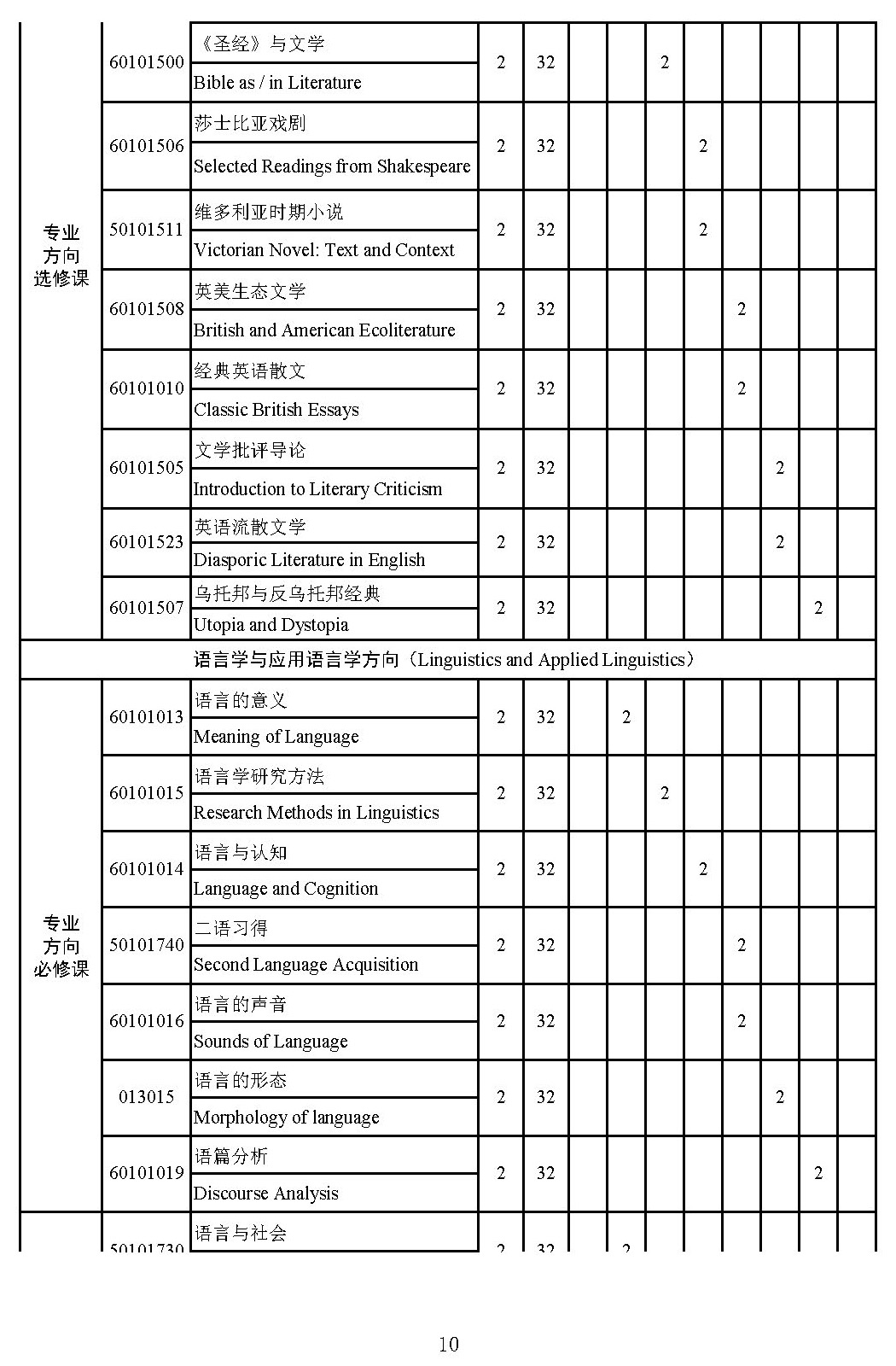 英语文学方向师资