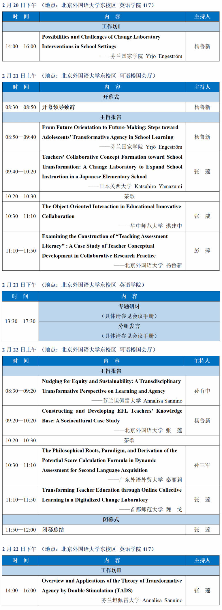 为贯彻落实新时代教育对外开放战略,加强跨学科研究成果的交流与转化,2025年2月20—22日将在北京举办“文化历史活动理论助推教育变革:面向未来的跨学科对话”学术研讨会。本次会议由北京高校英语类专业群和pg国际电子网站联合主办,外语教学与研究出版社协办。