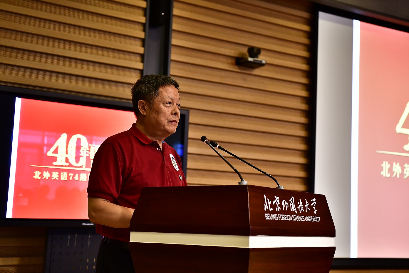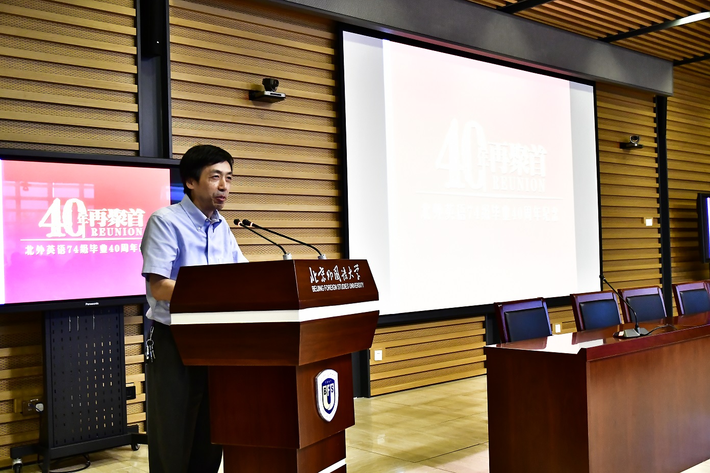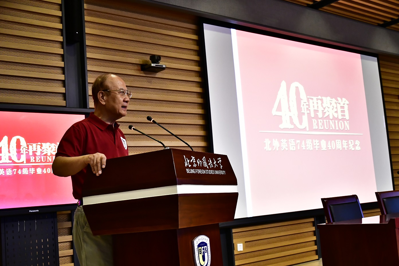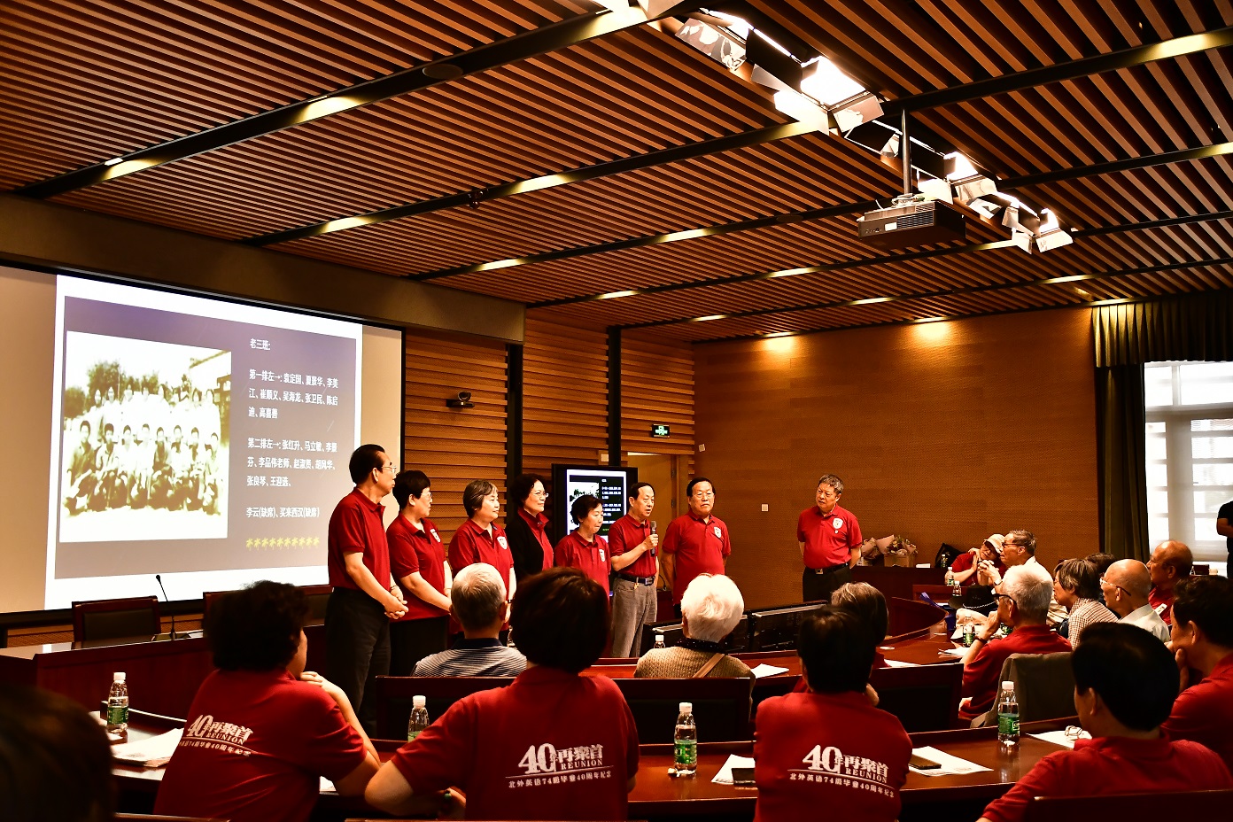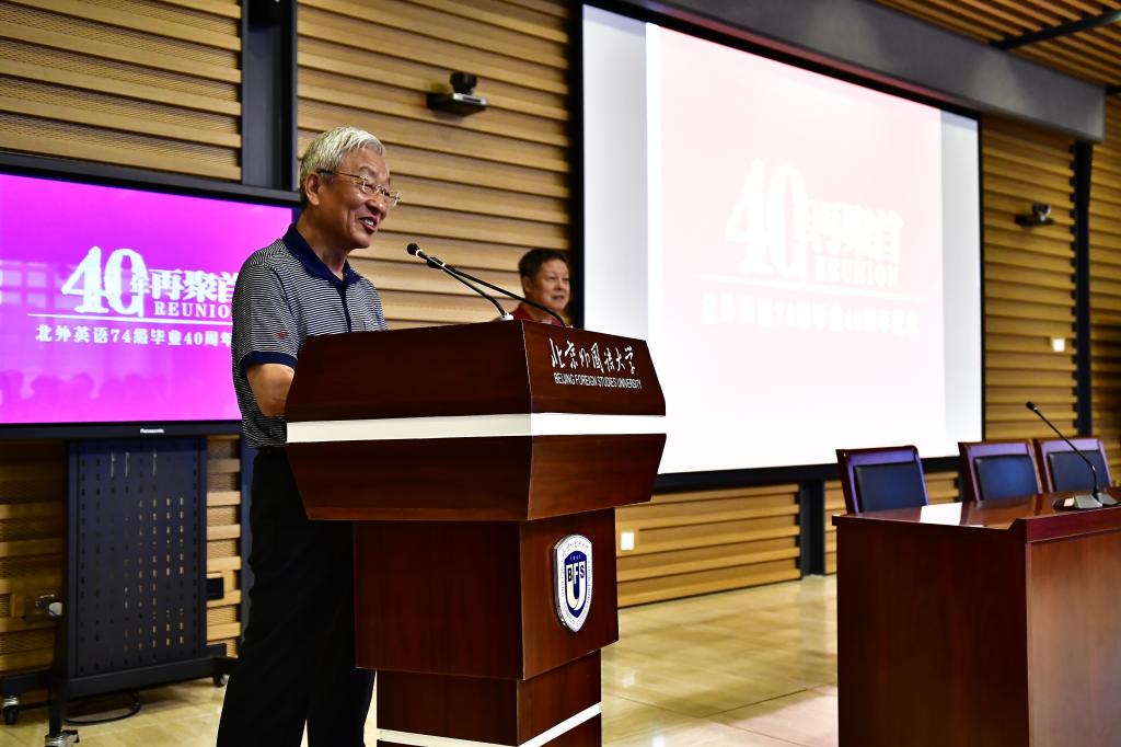 9月15日,北京外国语大学77周年校庆之际,pg国际电子网站迎来了部分校友返校。其中最大规模的pg国际电子网站1974级校友毕业40周年纪念活动在图书馆五层学术报告厅举行,来自全国和世界各地的近80位校友和10多位昔日恩师齐聚一堂,共同追忆往日的校园生活。北京外国语大学校友会会长,原党委书记杨学义、pg国际电子网站院长张剑、pg国际电子网站党总支书记路兴出席此次活动。活动由校友代表吴天鹏主持。
