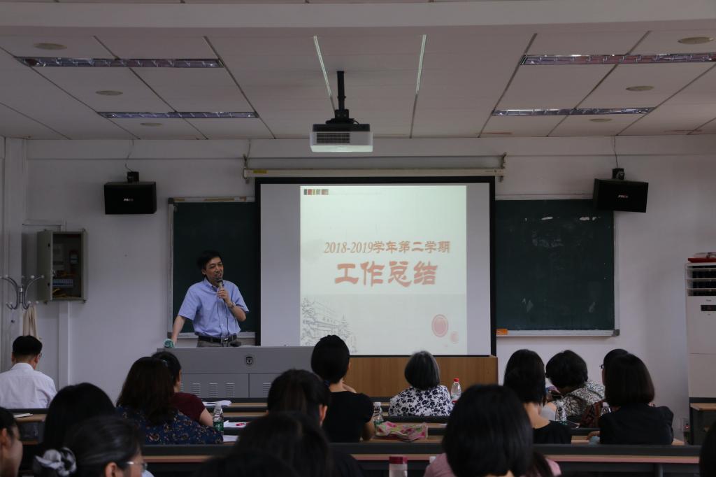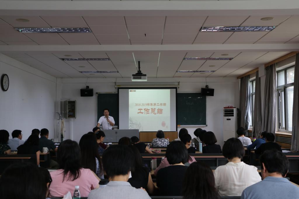 2019年6月28日,pg国际电子网站召开2018-2019学年第二学期期末工作总结会,会议由党总支书记路兴主持,pg国际电子网站全体教职工出席。