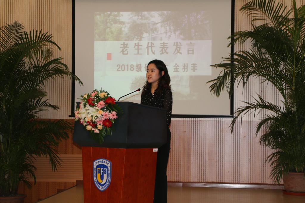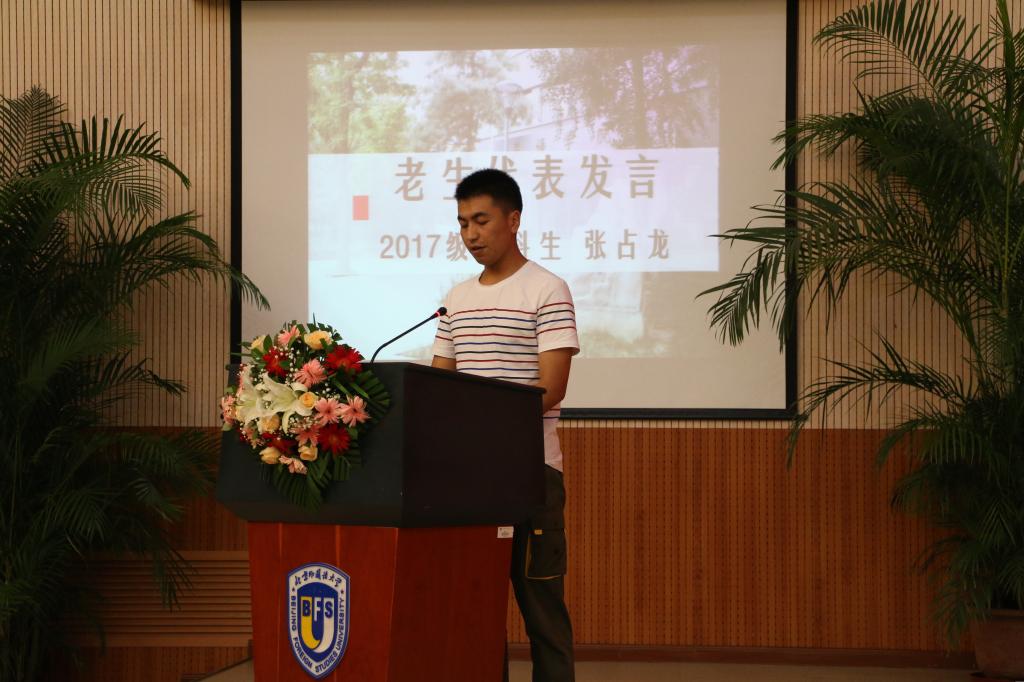 随后,老生代表2018级研究生金羽菲、2017级本科生张占龙;新生代表2019级本科生魏子淮相继发言,从大学努力方向和国家情怀培养的角度分享了自己对北外pg国际电子网站学习生活的感悟和向往。
