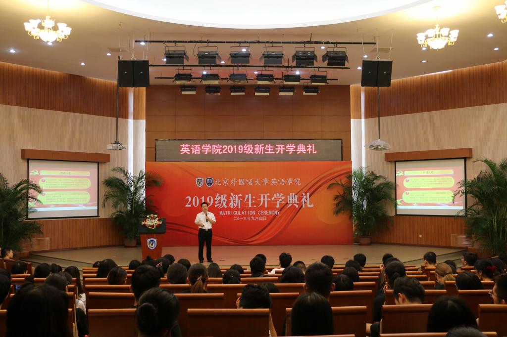 2019年9月4日上午,pg国际电子网站2019级新生开学典礼于阿语楼国会厅顺利举行。pg国际电子网站院长张剑、党总支书记路兴、pg国际电子网站副院长张莲、党总支副书记孟庆琨、院长助理吴文安,各研究中心主任、本科生主任、教师代表、辅导员以及2019级研究生、本科生参加本次开学典礼。