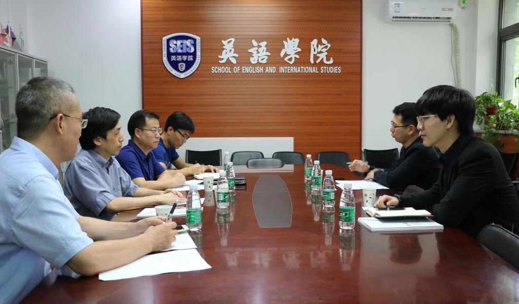 文毅介绍了策马集团基本情况。策马集团系联合国官方翻译服务供应商,从事翻译服务、翻译教育培训、会展服务、外语猎头服务、翻译类计算机软件开发等业务,是中国最著名的全球多语种语言服务供应商之一。胡馨友就正在开展的2019中华口译大赛的情况进行了详细介绍,并就大赛总决赛的合作事宜向学院领导进行介绍说明。