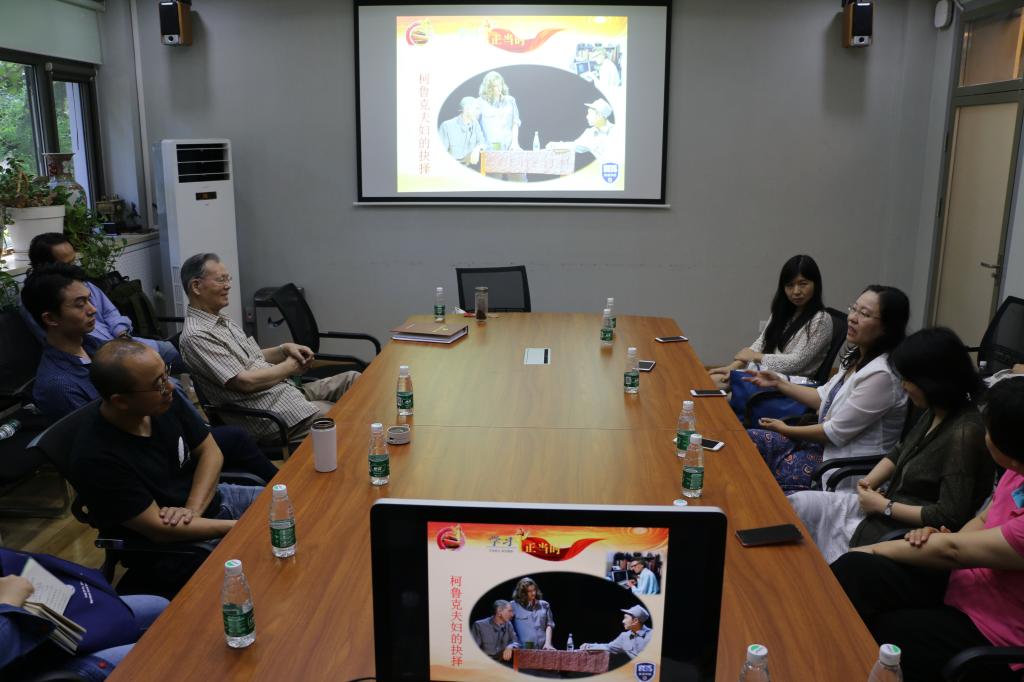 会前,学院各教职工党支部向全体教职工党员发放了《北京外国语大学“不忘初心、牢记使命”主题教育典型引路之伊莎白·柯鲁克》材料学习。活动伊始,首先播放了纪录片《西方女人类学家的中国记忆——伊莎白·白鹿顶》,党员们回顾了伊莎白·柯鲁克作为一名国际友人,亲历、见证了中国革命从艰难走向胜利的历史进程。随后,邀请张中载教授作为历史的亲历者与见证人,向大家讲述了他眼中的伊莎白老师。