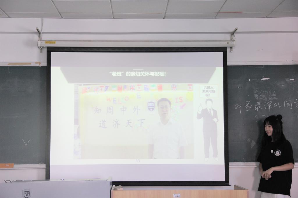 本次初赛邀请2018级辅导员王书剑老师、2019级辅导员于承杰老师、英院教授王元陆老师、团总支副书记金奕达以及周子茗、曹雨萱、张宝泽三位小班主任出席。初赛要求每个班级准备用作展示介绍的PPT以及能够体现团支部特色和学生风采的海报,并呈现一段时长2分钟的团支部风采视频。出场顺序由各班代表抽签决定。