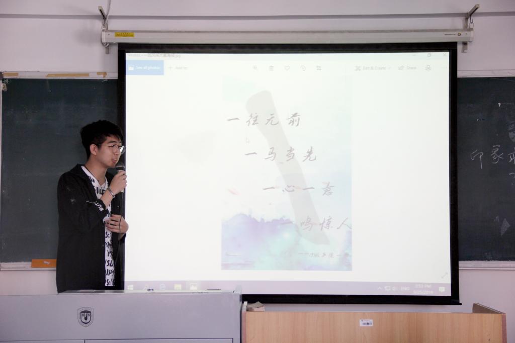 1903班在大家的期待中第一个开始了展示,集体中各具天赋的成员风采让在场的观众眼前一亮。1907班紧随其后,特别的横板海报设计体现出这个新设立的班级独特的一面。第三个出场的是1904班,26个来自天南海北的青年人在这个集体中找到了属于自己的温暖。1902班的展示展现出积极向上的青春活力,得到了观众们的认可。1906班的星空海报奇幻而又温暖,口号“源自五湖四海,汇作一体同心”也是他们团结的证明。短暂的中场休息后,1901班延续赛场评委与观众们的好奇心,抒发了青春志向和蓬勃朝气。最后出场的是1905班,他们充分展现了青年学子的英雄豪气。